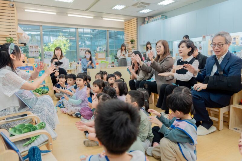 在管碧玲主委邀請下,行政院副院長鄭麗君與文化部部長李遠於18日一同走進新莊聯合辦公大樓幼兒園,與園內「海洋班」20多位幼童共讀海洋委員會海洋保育署出版的中英雙語繪本《海邊的星星巨人》。活動透過說故事、互動問答與繪本分享,陪伴孩子認識來自深海的溫柔巨人—鯨鯊,並在輕鬆有趣的氛圍中,引導孩子理解海洋生態與保護海洋的重要性,讓海洋保育理念從幼年教育開始向下扎根。