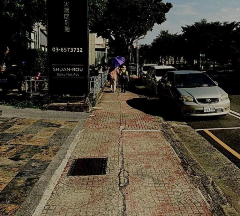 ▲「光明一路及周邊人行步道改善前。(圖/記者蔣彤雲攝)