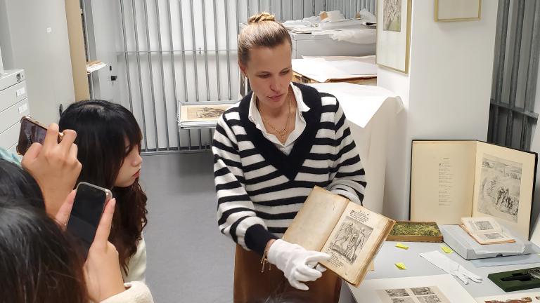 ▲親手觸碰十六世紀以來珍貴的醫學手稿與畫作,學習醫學史料保存與維護實作,重新省思疾病、死亡與醫學,讓同學意識到醫療不只是冰冷的技術,更是人類文明對抗苦難的縮影。(圖/義守大學提供)
