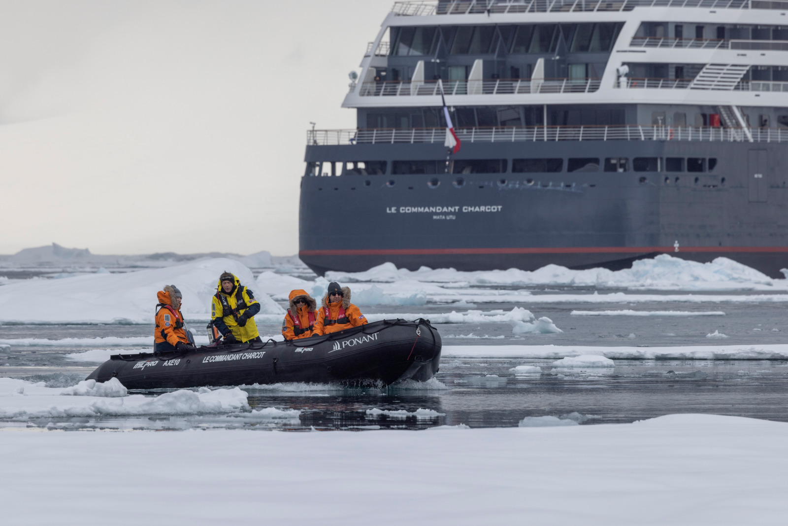 指揮官夏古號(Le Commandant Charcot),是全球第一艘具有極地強大破冰能力、兼具七星級奢華配備的郵輪,同時是第一艘可將旅客帶往正北極的客船,成為豪華極地探險郵輪的代表!總噸位31,757噸,設有123間奢華客艙與套房,可容納最多245位賓客、約215名船員,船上匯聚超過20位極地自然學家,專精於極地生態、野生動物觀察,隨行陪伴登岸。船身為氣電混合動力船,結合Aker Arctic雙向破冰設計與智慧冰面航線規劃,在降低對極地生態干擾的同時,帶來安全且深入的探索體驗。