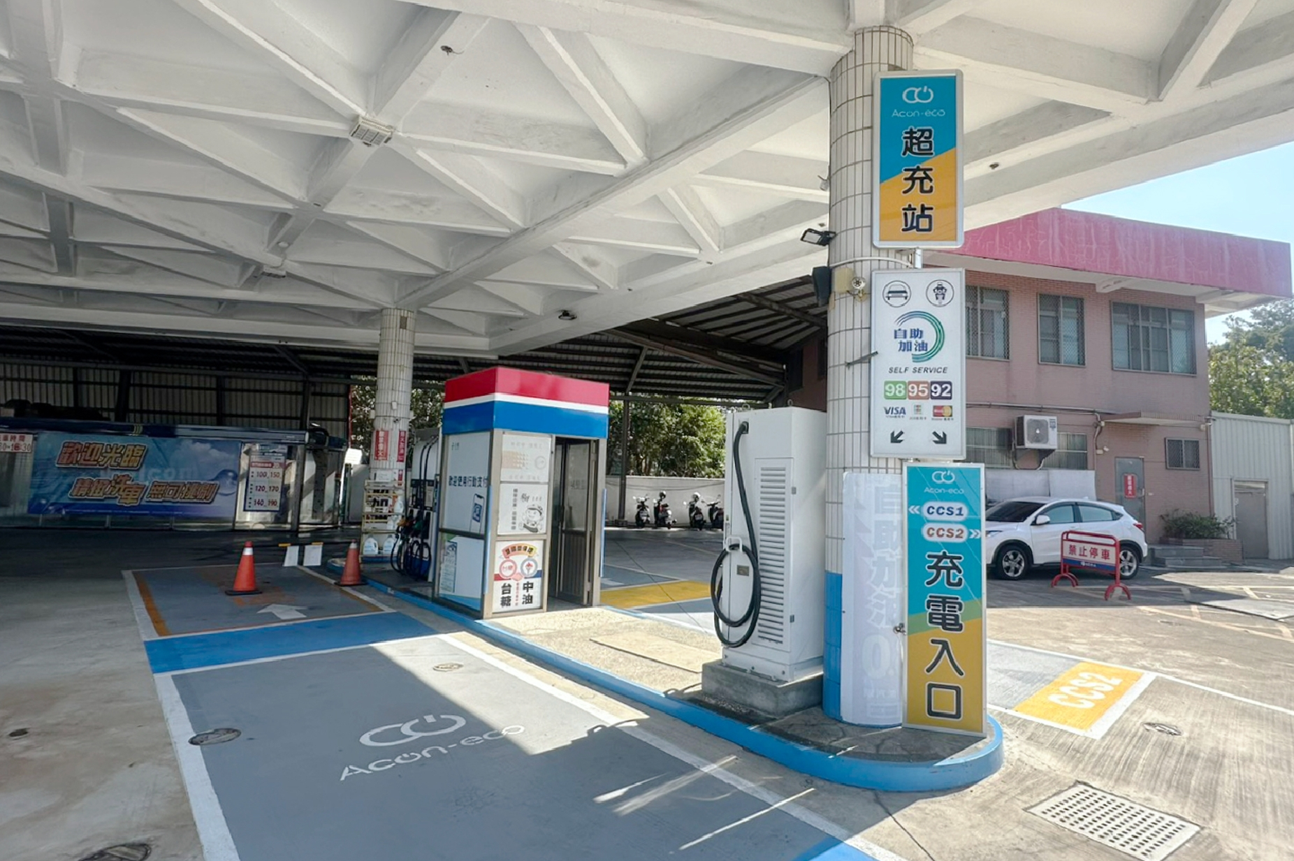 本次建置的五處站點,皆位於台糖加油站區內,具備充足的車位動線與服務腹地,並貼近主要交通幹道,讓電動車車主可在既有加油站空間中,輕鬆完成高速充電。五站據點分別為Acon-eco高雄大社站、Acon-eco屏東和生站、Acon-eco高雄大湖站、Acon-eco高雄民族二站、Acon-eco高雄成功站。