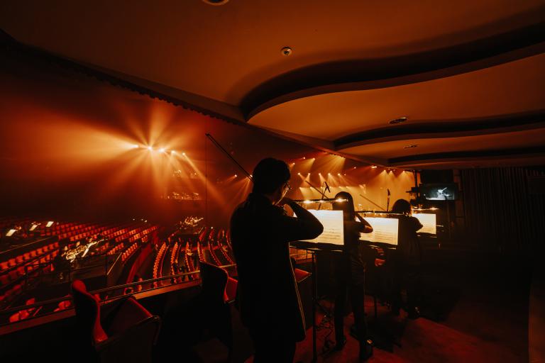 「13個聲部分散開來,沒有主奏、沒有伴奏,每個樂器都是平等的!」黃若說,大劇院的大小和曼徹斯特國際工房一樣,但這次在後台、觀眾席、包廂都放置音樂家,可以說是升級版!觀眾可以想像自己走進一座鳥籠,有很多鳥兒在不同位置歌唱;也像走進一座音箱,音響發燒友可以找尋心中聲音最佳的位置。