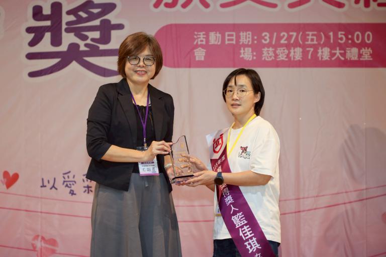 至於績優護理工作人員得獎者,來自台南教養院的葉蕙芯護理師,在台南教養院從事護理工作已逾20年,以細心與同理提供專業護理照護,面對重度障礙者需求能即時判斷與處置,曾於緊急氣道阻塞事件中成功應變,避免危機發生;並積極推動健康促進及輔具改良,提升服務品質與生活功能,表現卓越獲獎。葉蕙芯護理師說,能獲育智獎深感榮幸,感謝服務對象的陪伴與教導,也感謝單位、團隊與家屬的支持與信任,讓我持續成長。未來我將持續精進專業,用心守護每一位服務對象。