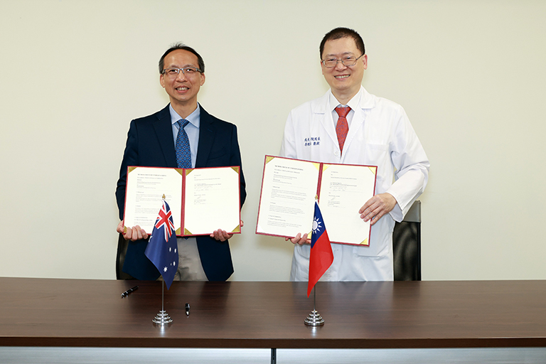成大醫院李經維院長代表與澳洲Monash Health神經暨中風部主任Henry Ma教授,於3月23日正式簽署合作備忘錄(Memorandum of Understanding, MOU);象徵雙方在國際醫療合作與學術交流上邁入嶄新里程碑,未來將共同推動腦血管疾病照護、臨床研究及醫學教育等多元面向的深度合作,以提升醫療品質並強化國際學術影響力。