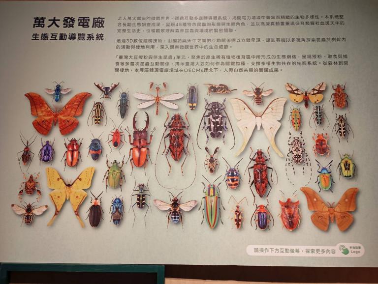 台電表示,展場也匯集台電人守護環境生態的暖心故事。如大甲溪電廠在馬鞍壩規劃階段,即將魚道融入壩體設計,並於2016年進行優化,降低魚道入口底檻與河床落差,使體型較小或跳躍性的魚類也可成功上溯,找到回家的路;萬大電廠則透過櫻花樹栽植與棲地管理措施,使霧社血斑天牛得以在場域中穩定棲息,更成功復育消失半世紀的原生種臺灣大豆,種種作為也讓大甲溪及萬大電廠日前榮獲我國首批陸域「保育共生地」認證場域,成為電力場域與環境生態共生的最佳印證。