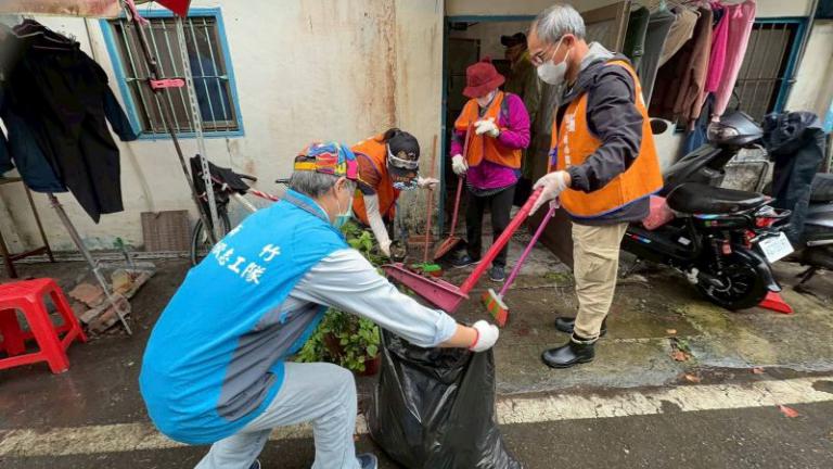 區組長注意到學子面臨的生活挑戰,不僅在精神上需要支持,居家環境也因長期雜物堆積而影響日常活動動線,增加生活的不便與衛生安全隱憂,面對上述狀況,新竹榮服處鞠宗顯處長帶領服務團隊及榮欣志工,攜手慈濟志工、尋樂藝文愛心協會近30人,整理、清潔並消毒。
