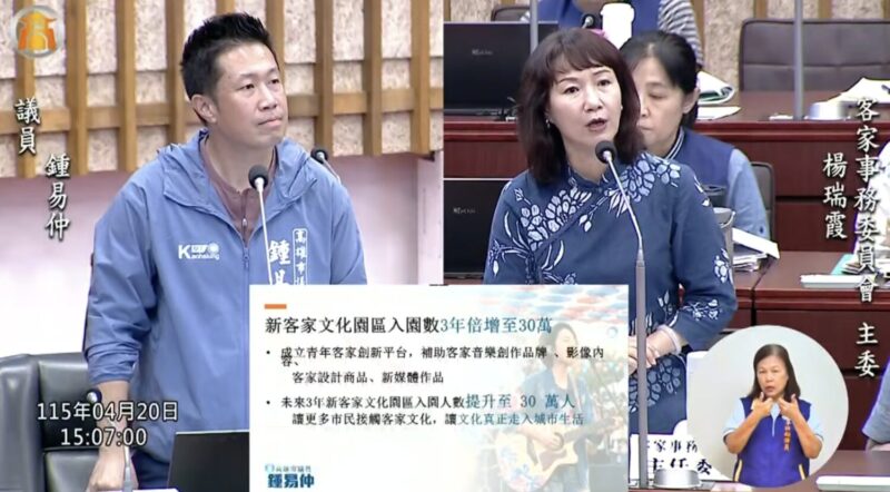 鍾易仲指出,高雄客家人口約40.7萬人,占全市人口14.7%,人口規模居全國第五位,年度客家預算約2.38億元,在六都中排名第四。資源並不少。實際政策成果卻未完全反映在文化能見度與推廣成效上,如三民新客家文化園區長期入園人數偏低,客家音樂、影像及文化內容作品的曝光度亦仍有限