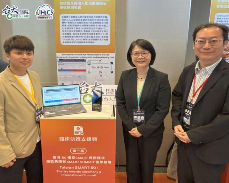 新竹臺大分院研發的「突發性耳聾個人化治療建議及預後預測裝置」於首屆「臺灣50」優良SMART應用程式全國115件競賽作品中,以「突發性耳聾個人化治療建議及預後預測裝置」獲得「臨床決策支援類」大獎,再度展現新竹臺大分院在智慧醫療與臨床決策支援領域的創新實力。