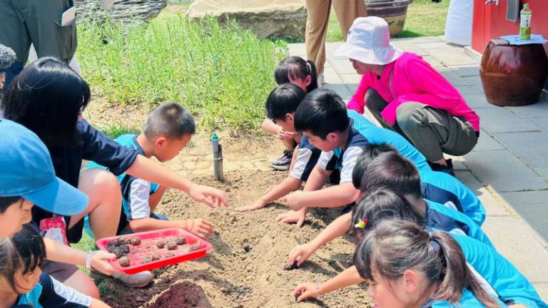 ▲小朋友播下受脅植物種子球,象徵播下希望。(新竹分署提供)。