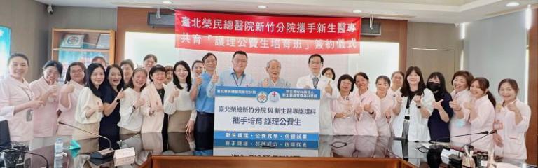 北榮新竹分院與新生醫護管理專科學校正式簽署「攜手培育護理公費生」計畫,雙方透過產學深度結盟,提供公費生每人每年12萬元獎助學金,除將因此緩解偏鄉護理人力缺口,更能深耕在地人才培育,翻轉職場環境,達成「入學即就業,畢業即留用」的共榮目標。