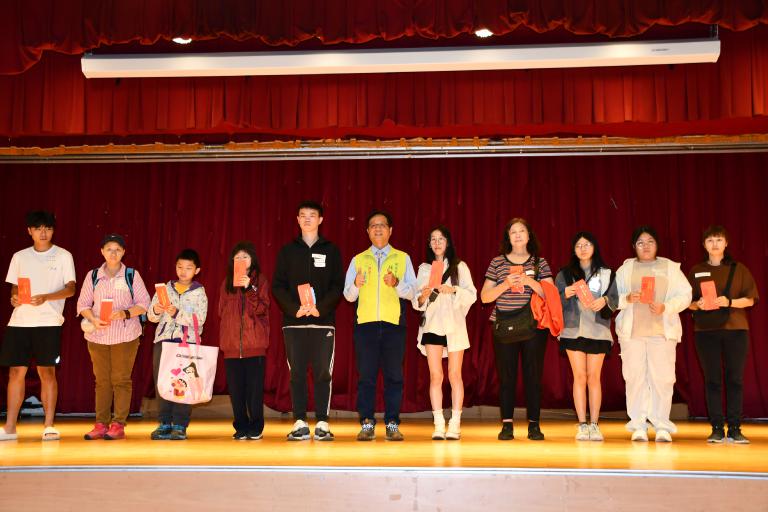 林市長同時期勉獲領教育補助費的同學們,即使經濟狀況不好,也要每天心存善念,要堅持保持快樂的心情,有能力時多幫助其他更困苦或弱勢的族群,同時一定要孝順父母;另外,要認真求學與做事。