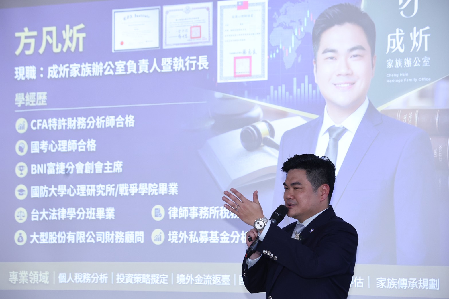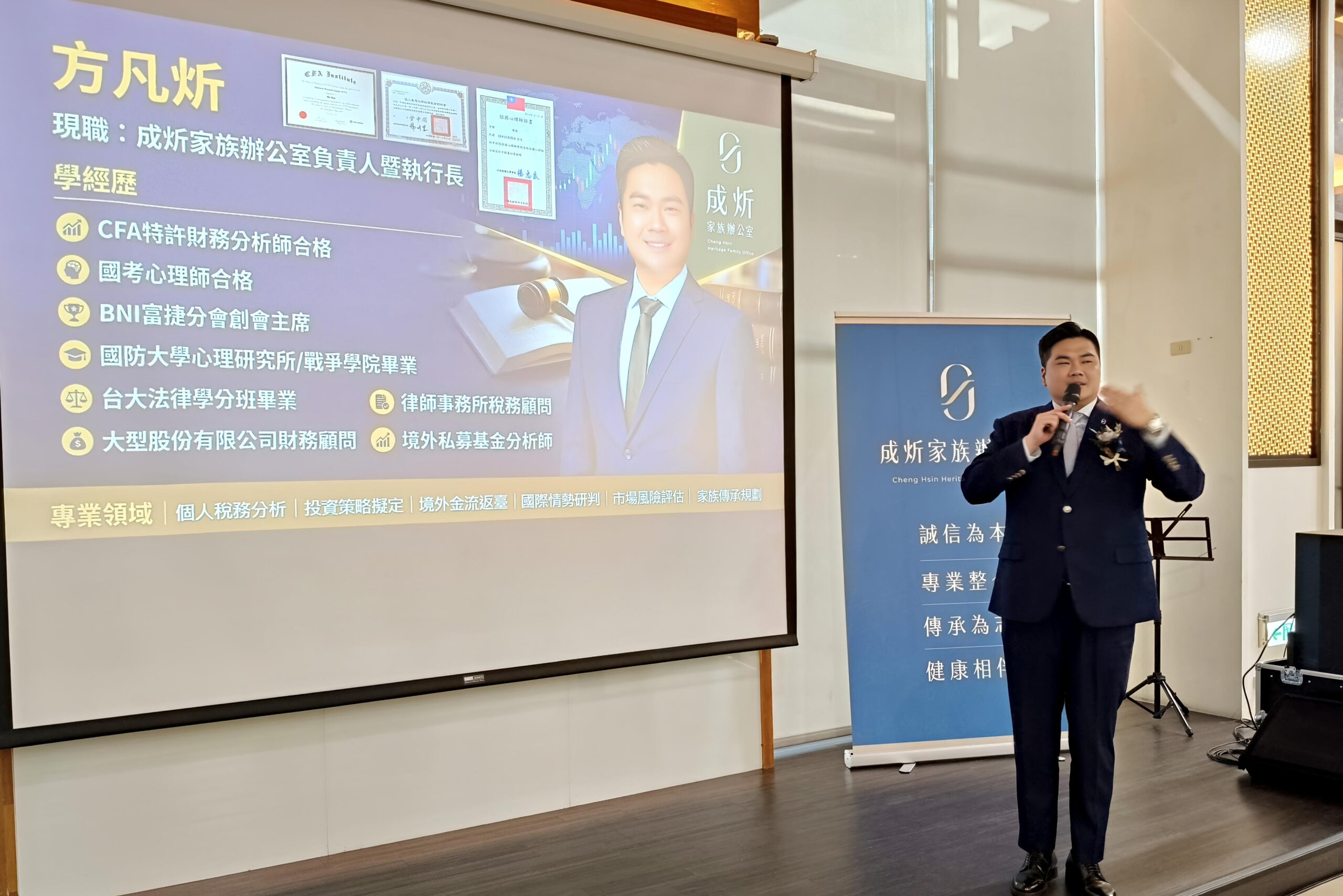 方凡炘指出,多數高資產族群面臨的核心問題,並非資訊不足,而是缺乏能整合各專業資源的關鍵角色。因此創立成炘家族辦公室,主打「顧問整合型服務」,協助客戶統籌法律、稅務、財務與醫療等專業團隊,提供更全面且長期的規劃方案。