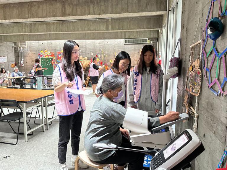 ,除了檢測服務,學生亦針對均衡飲食、菸酒防治等議題進行衛教宣導,協助族人提升自我健康管理意識,此實作過程不僅強化了學生的臨床與公共衛生經驗,更在互動中展現醫事人員的服務熱誠。