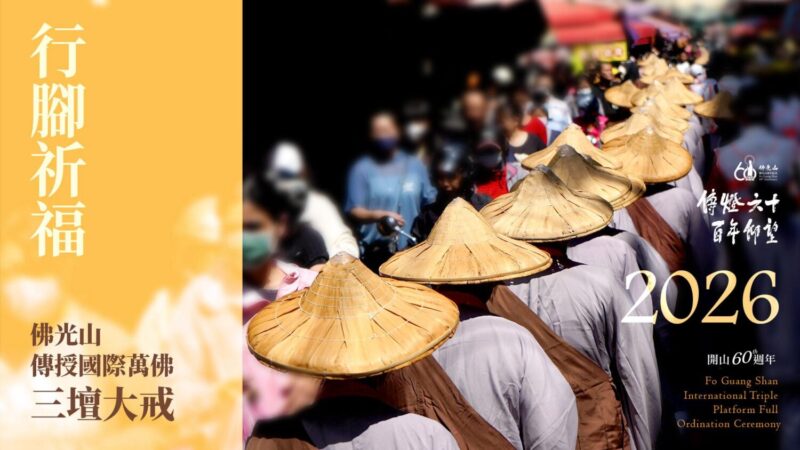 【今傳媒/記者李祖東報導】「佛光山2026年傳授國際萬佛三壇大戒」將於5月3日舉行三壇正授,並依循佛制,於三壇大戒圓滿後舉辦行腳托缽,當天下午將自佛光山啟程,展開全台行腳,為世界和平祈福,展現人間佛教的慈悲精神與社會關懷。