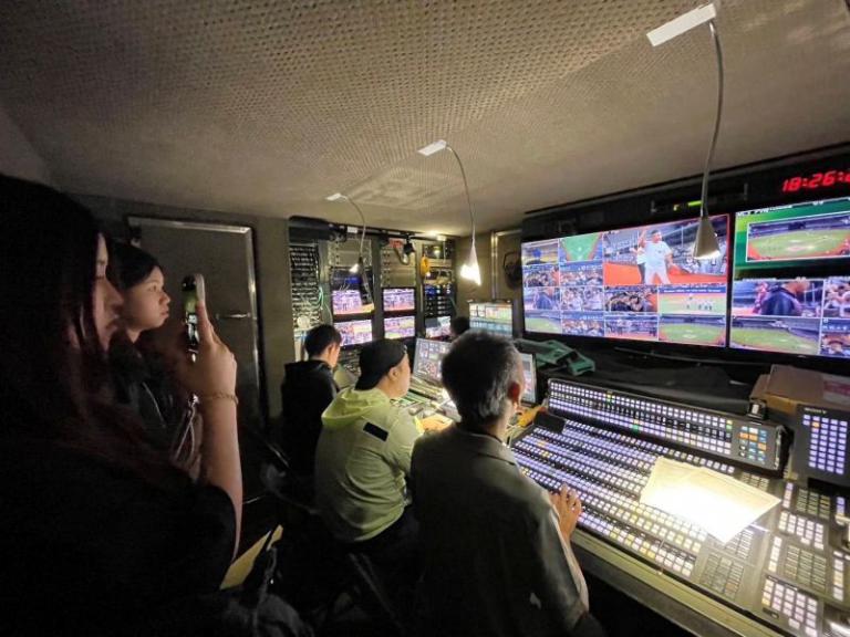玄奘大傳系與愛爾達電視台簽署了實習合約,在過去幾年的實習中,同學們表現傑出,不僅參與了巴黎奧運與德國世大運等國際級重大賽事的實習,大傳系學生更實地進駐大巨蛋,深入轉播車與後勤通道,與愛爾達攜手體驗職棒轉播的實戰,親身了解導播、攝影、技術與行政等不同職位的專業分工,在緊湊的氣氛中深刻體會並掌握了系統操作與體育節目製作的重要技能。