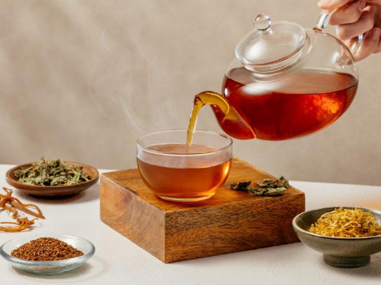 ▲萃博士茶,融合多重草本素材,溫潤回甘,成為晨間補充能量的療癒飲品。圖/煙波國際觀光集團提供