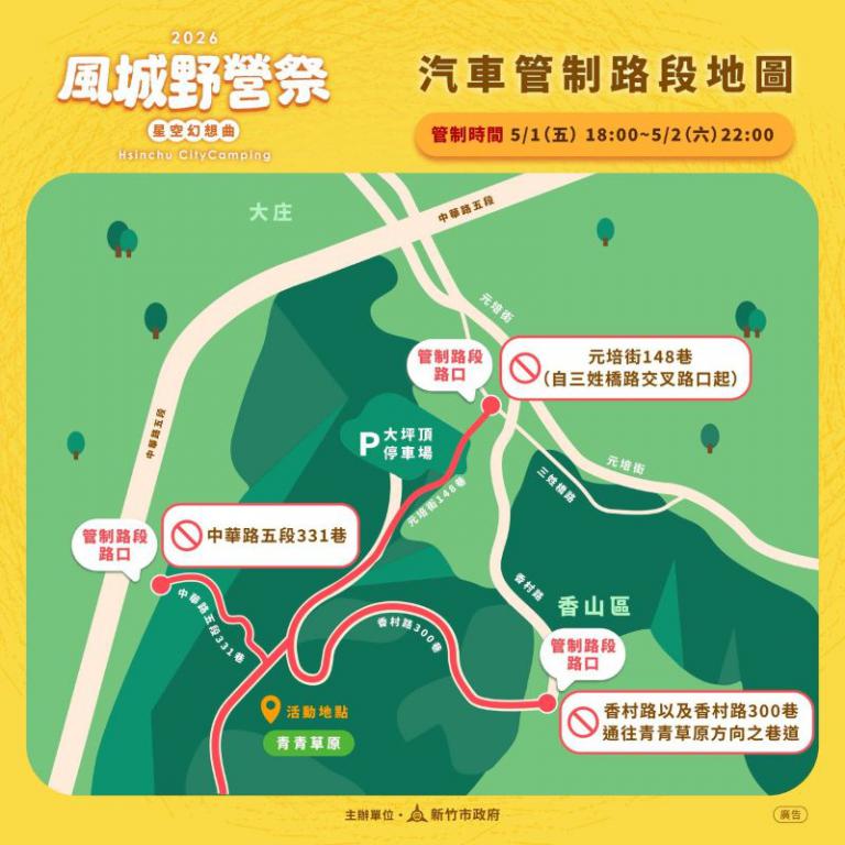 市長高虹安表示,風城野營祭結合自然景觀與多元活動設計,成功打造屬於新竹市的戶外品牌,不僅吸引大量市民與遊客參與,也成功帶動在地觀光與產業發展,壓軸場「星野終曲」將邀請HOS新竹市立交響樂團,演奏包含《龍貓》、《霍爾的移動城堡》等多首宮崎駿動畫系列組曲,以更豐富的表演與互動體驗,透過悠揚樂聲結合草地氛圍,帶來沉浸式的視聽饗宴,邀請市民朋友一同共享溫馨且難忘的春夜時光。