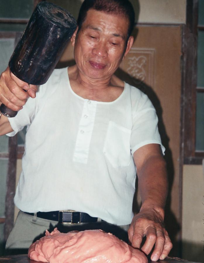 ▲黃海瑞每日凌晨一點親自前往市場挑肉,接著開始長達數小時、單調且繁重的手工捶打。 (圖/記者蔣彤雲攝)