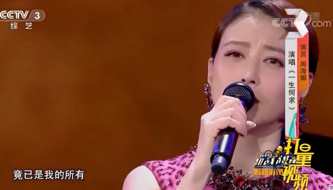 從網友在微博上po出的影片裡,周海媚穿著灰綠色的長裙,出席某頒獎典禮,上台獻唱已故香港歌手陳百強的《一生何求》,而這首歌也是她在1989年演出的港劇《義不容情》的主題曲,當時這部戲時除了她以外還有溫兆倫、黃日華、劉嘉玲、藍潔瑛跟邵美琪等已經相當走紅的大咖們,可說是星光熠熠,也成為她的影劇代表作之一。