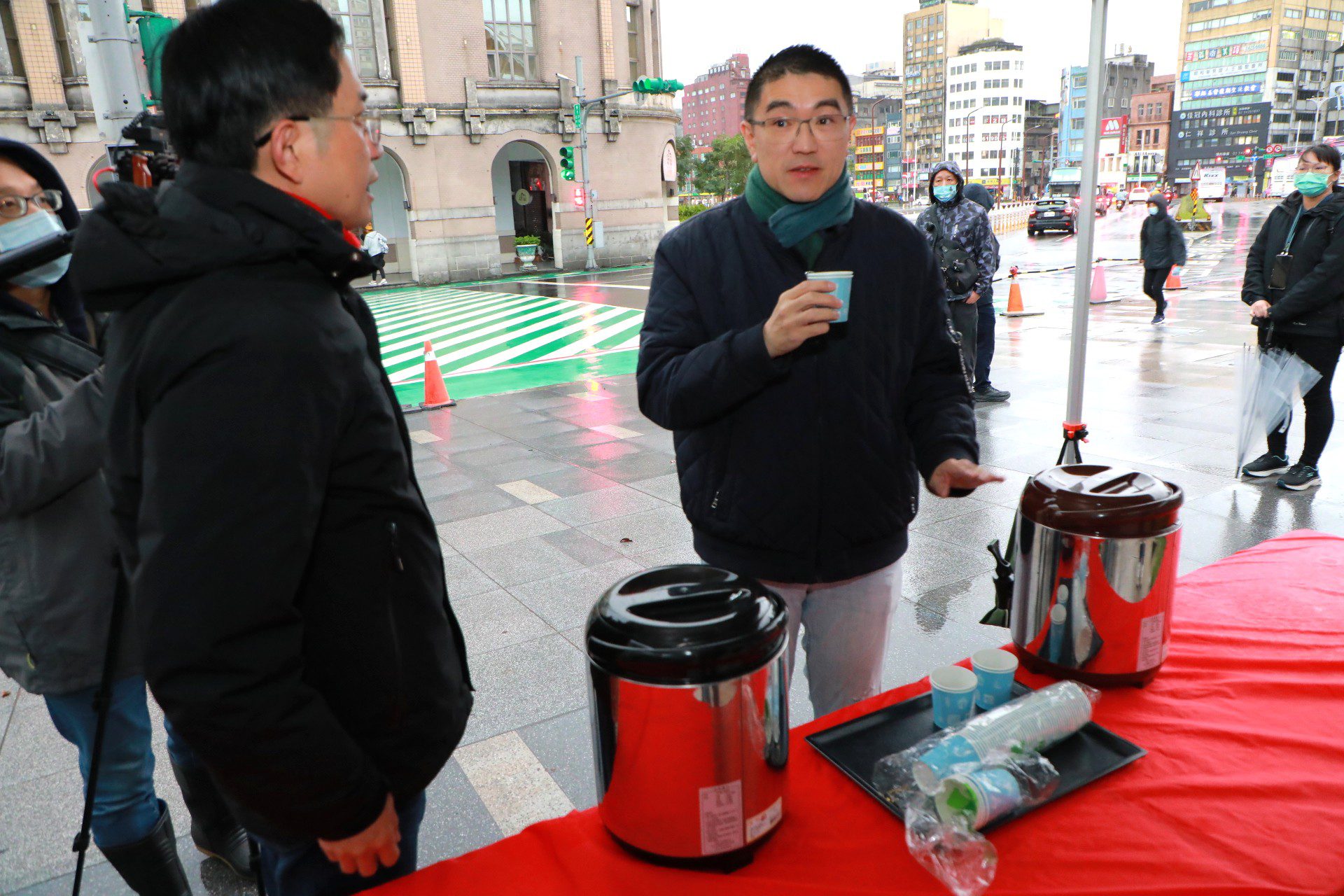 近日天候冷颼颼,基隆市政府為體恤通勤族,交通處在旅服中心旁巷道搭設帳棚遮風避雨,同時另設熱飲服務區提供熱薑茶讓民眾保暖,市長謝國樑今天在交通處長王圳宏陪同下,視察候車帳棚環境及熱飲供給,並呼籲民眾外出務必添加保暖衣物。