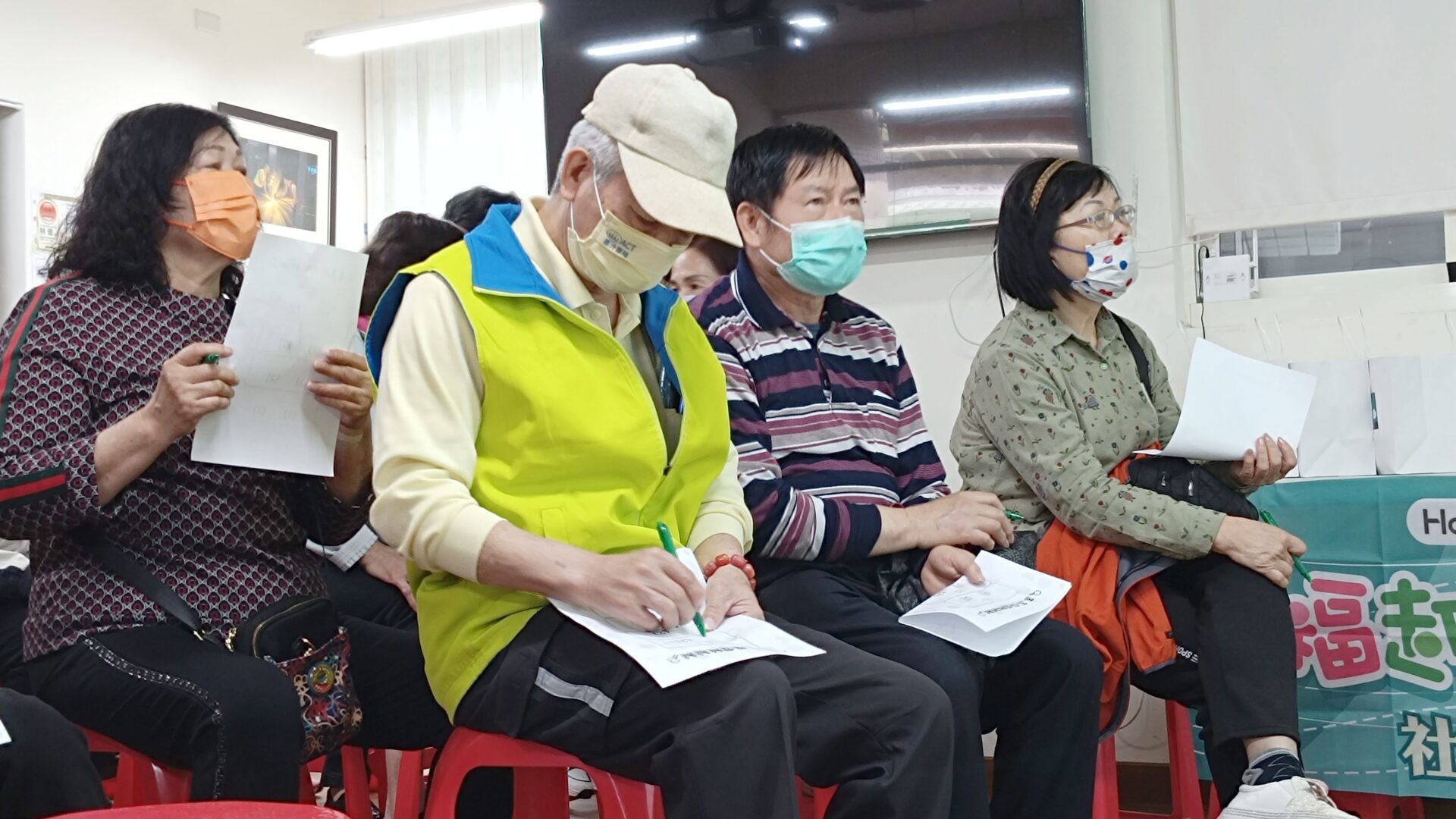 講師現場提供台灣事實查核中心的QRcode,讓長輩們在未來能夠透過這個管道取得正確資訊,長輩們也都表示,收到來路不明的訊息,要先查證,包括撥打165反詐騙專線,或向里長詢問。