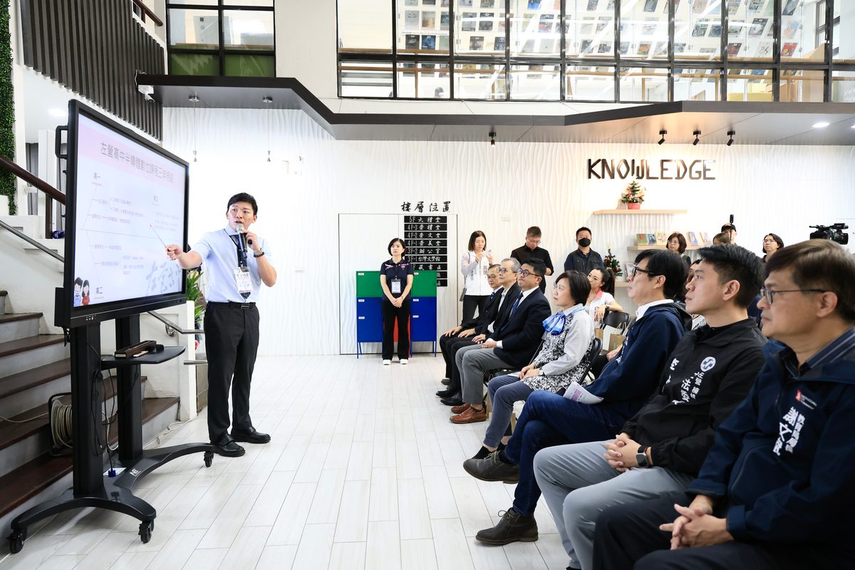 隨後分別實地視察課程規劃及學生學習情況,包括「半導體先修課程」、「AI2程式設計」、「生醫感測之運用」等課程,並與左營高中學生進行實際互動,體驗操作由學生應用AI程式設計的遊戲,了解學生們的學習情況。課程規劃由高雄大學、中山大學及高雄醫學大學開設之半導體製程概論、AI程式設計及生醫感測運用等課程。